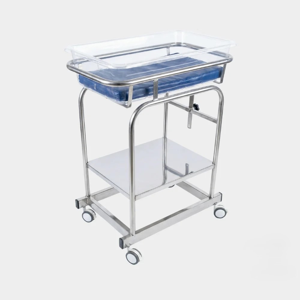 A durable, corrosion-resistant transport solution for newborns, featuring high-quality stainless steel construction and smooth-rolling mobility. Designed for maximum hygiene and safety in maternity wards, it is fully supported by the 25-year nationwide engineering expertise of HK Global.